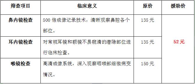 2、 每日前20名由中国五官基金会提供耳鼻喉内窥镜筛查援助,三项检查援助价52元。