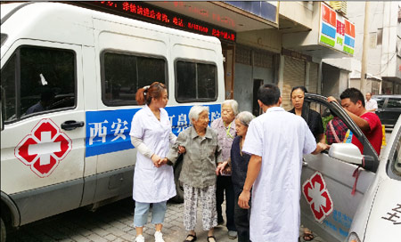 当天下午,一些需要治疗的老年公寓老人在中大医护人员的帮助下,一起到西安新城中大耳鼻喉医院进行诊治,并为部分长期服药的老人调整了治疗方案。大车家巷社区老年公寓的李奶奶高兴地说道:“年龄大了到医院去也不方便,还要坐车还要排队挂号,我觉得这次中大这么负责任的专车接我们看病,让我感觉到很温暖。”