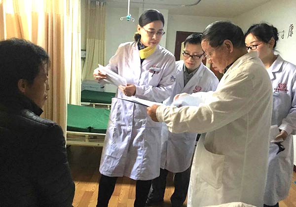查房过程中,来长荣认真听取了管床医生的病史汇报,进行专科检查,详细询问每一位住院患者的个人感受,并解决疑问,针对患者的病情进行了细致分析和诊断,对病人下一步的治疗和用药调整提出了指导性意见。
