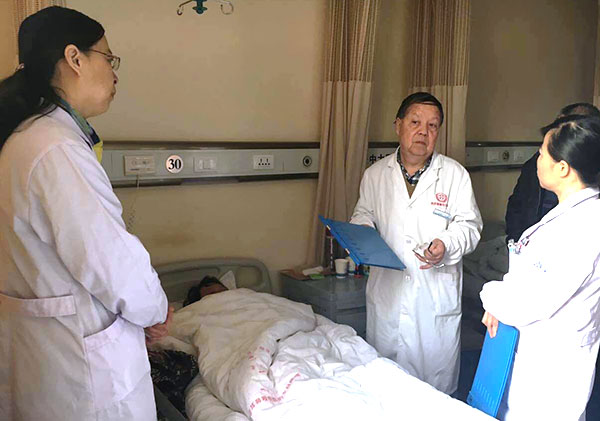 在与患者交流病情时,来长荣不仅十分注重患者的主观感受,根据细节逐步深入,进行分析诊断,更是多次对患者的恢复情况给予肯定和鼓励。查房过后,很多患者都表现出更大的积极性和希望。